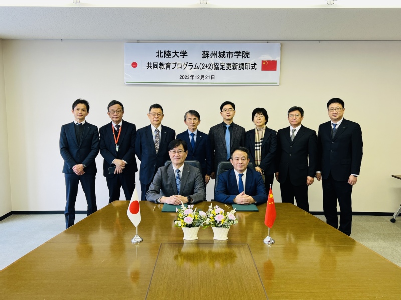 北陆大学理事长、校长小仓勤、监事周航、理事大桑等参加会晤。芮国强指出,金泽市与苏州市是友好城市,作为苏州市唯一的公办本科高校,苏州城市学院有责任与位于金泽市的北陆大学做好合作交流工作,希望在持续扩大学生交流的基础上,进一步拓展交流广度与深度,在教师互派、国际汉语教学、双学位项目拓展等方面深入合作。双方还续签了《苏州城市学院与日本国北陆大学共同培养本科生教育合作实施协议》。会晤过后,芮国强一行与我校在北陆大学学习的学生进行座谈,并走访了宿舍,详细了解他们的学习与生活状况,时值冬至,芮国强向同学们送上真挚的慰问与祝福。
