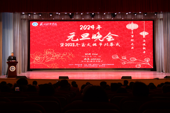 为了进一步传承和弘扬中华优秀传统文化,领略传统文化的内涵,丰富校园生活,12月22日晚,由党委宣传部、工会、团委(美育中心)、基建与后勤管理处主办的2024年元旦晚会暨2023年冬至文化节闭幕式,于综合楼三楼多功能厅顺利举办。校党委副书记、校长赵志宏,校党委常委、副校长吴昌政出席活动。学校相关职能部门负责人和老师,各协办单位、赞助单位参与活动。