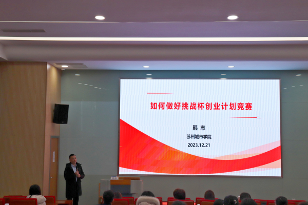 为推动我校“挑战杯”大学生创业计划竞赛高质量、可持续开展,提高我校教师大赛指导能力,增强实践创新水平,12月21日,我校举办“挑战杯”中国大学生创业计划竞赛专项辅导讲座。本次讲座特邀江苏大学教授、全国“挑战杯”竞赛优秀指导教师韩志做主讲嘉宾。各学院青年教师以及项目团队指导老师到场学习,讲座由教务处副处长顾荣庆主持。