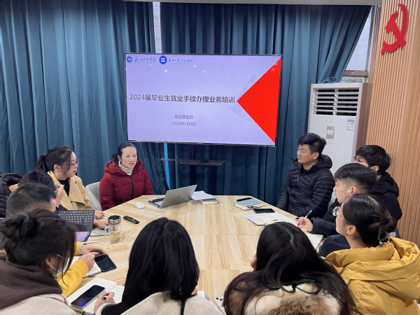 为深入学习贯彻习近平总书记关于高校毕业生就业工作的重要指示批示精神,落实党中央、国务院关于稳就业决策部署,切实做好2024届毕业生就业指导和服务工作,1月3日下午,我校在招生就业处大厅召开2024届毕业生就业工作专项培训会,各学院毕业班辅导员参会,会议由招生就业处朱冯主持。