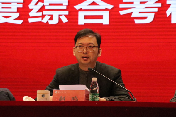 市委教育工委委员、市教育局副局长赵鸣强调综合考核的重要意义,介绍年终综合考核的主要任务和方法步骤,对做好年终综合考核工作提出了明确要求。一是要提高政治站位,深刻领会做好综合考核工作的重要意义;二是要锚定重点任务,准确把握年度综合考核工作步骤要求;三是要周密安排,谋划,严格落实综合考核有关要求。他指出,坚持不懈抓好综合考核有着重要的政治考量和现实考量,是贯彻落实习近平总书记重要讲话重要指示精神的具体举措,是推动高质量发展目标任务的重要抓手,也是推动干部担当作为的重要手段。他希望我校按照工作安排加强沟通,确保平稳有序地完成各项考核任务。同时加强统筹,扎实做好学校各项工作,确保两不误、双促进。
