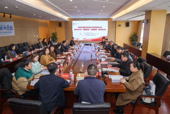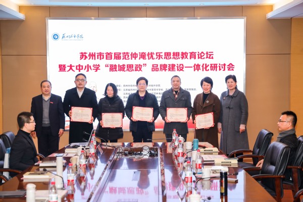 为深入学习贯彻习近平文化思想,把“先天下之忧而忧,后天下之乐而乐”的忧乐思想融入思政课,传承和弘扬城市的文化根脉,积极建设“融城思政”教育教学品牌和培育有家国情怀的时代新人,1月6日,由苏州市范仲淹研究会、苏州城市学院主办,江苏省苏州中学、苏州市景范中学、苏州高新区文正小学教育集团、江苏省木渎高级中学、吴中区范仲淹实验小学协办,苏州城市学院党委宣传部、苏州城市学院马克思主义学院、苏州城市学院马克思主义学院“融城思政”名师工作室承办的“苏州市首届范仲淹忧乐思想教育论坛暨大中小学‘融城思政’品牌建设一体化研讨会”在我校顺利召开。来自苏州市教育局、苏州市范仲淹研究会及苏州市大中小学的领导、专家学者、思政课教师和相关专业研究人员三十余人参加此次会议。会议由我校马克思主义学院教授李宏刚主持。