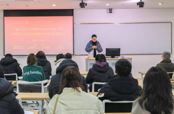 为进一步加强我院班主任队伍建设,扎实做好新学期德育工作,切实提高班级管理的有效性,2月29日,城市文化与传播学院于综合楼122室召开2024年春学期全体班主任会议暨就业专项工作推进会。城市文化与传播学院副院长涂小马、院长助理茆萌、教务秘书赫金芳及全体班主任参与,会议由城市文化与传播学院团学工作办公室主任沈耀主持。