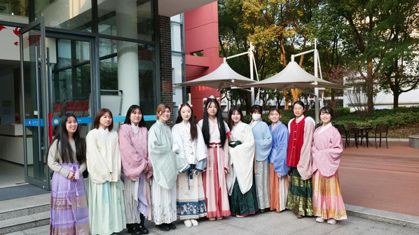 交流会上汉服社为大家准备了春联书写和汉服体验活动。通过写春联和汉服体验活动,让研修团的同学们感受我国浓厚的春节氛围,加深对中华文化的了解。