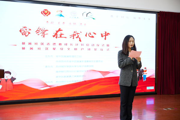 活动分为四个主要部分:莫舍社区星级文明户以及优秀社区志愿者颁奖仪式、党建共同体签约仪式、越溪社工站首届微公益创投项目启动仪式以及志愿者风采演出。在党建共同体签约仪式环节,苏州城市学院光学与电子信息学院党委与莫舍社区党委等共建单位共同签署了结对共建协议。参与此次活动的学院志愿者林梦娴表示:这次志愿活动我非常有感触,作为一名引导员,要认真听主持人的演讲,时刻准备引导嘉宾入场,还要关注活动中其他人员的动向,提醒他们及时上台及时入座。活动过程中,我觉得怀着一个服务心态是非常重要的,希望后面能参与更多充实有意义的志愿服务活动。