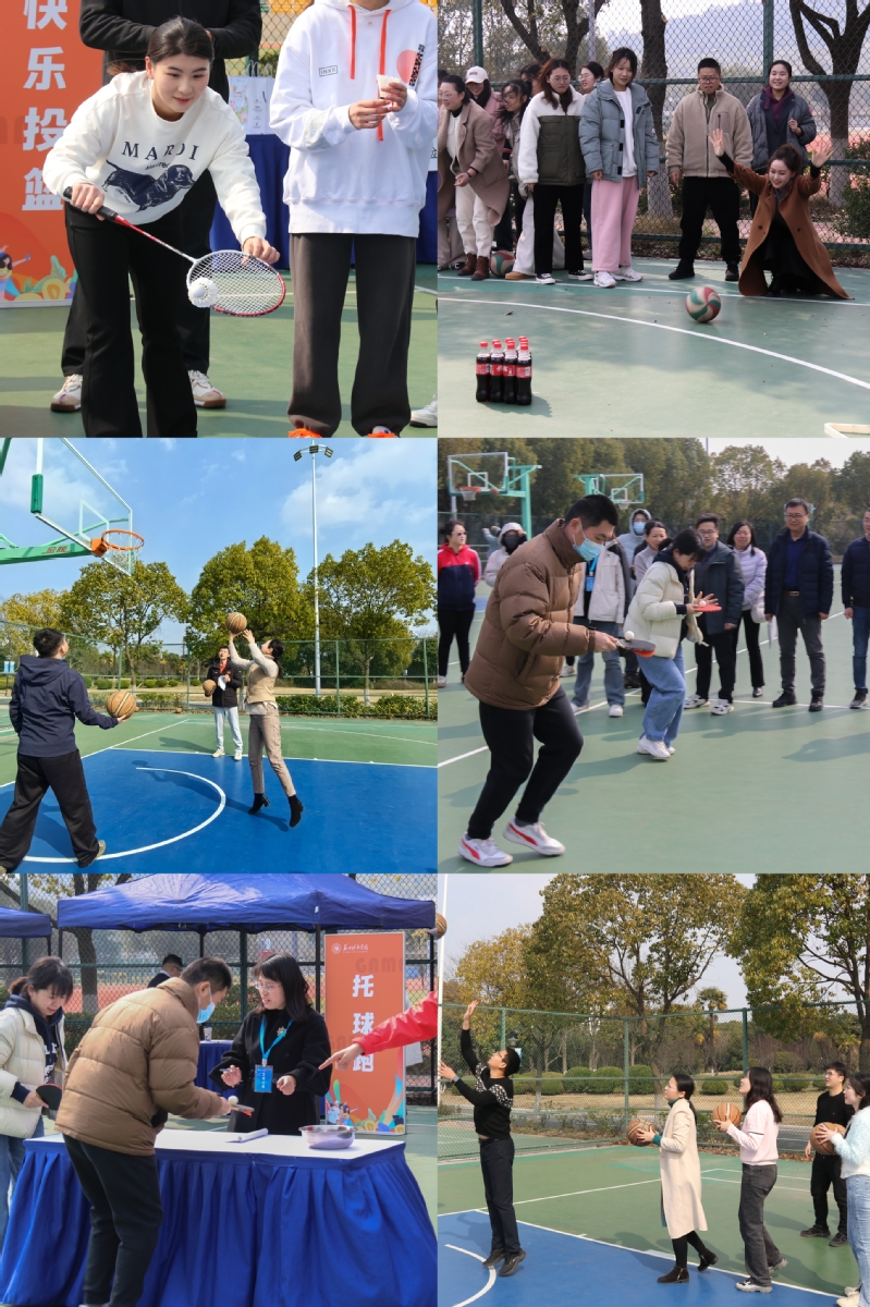 校工会联合基础教学部承办趣味活动。全校21支代表队,共计440人次参加。活动共设置托球跑、定点入求、趣味保龄球、快乐投篮等4个趣味运动项目,活动内容丰富、形式多样,趣味性十足。
