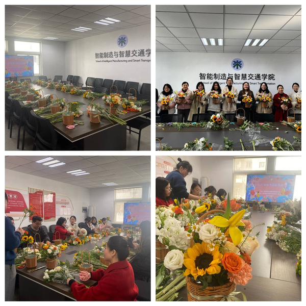 三月,春和景明,草木萌发,我们迎来了第114个“三八”国际劳动妇女节。为丰富教师精神文化生活,提升教师职业幸福感,智能制造与智慧交通学院分工会携教工党支部开展了“师”情“花”意,美丽如你“三八”妇女节插花活动。