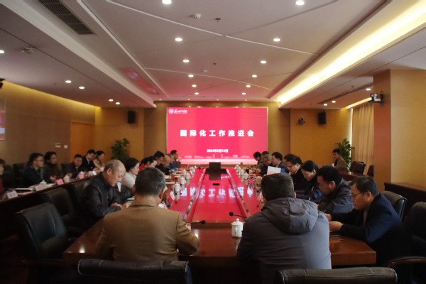 3月14日下午,我校国际化工作推进会在综合楼大会议室召开,校党委书记、国际化工作领导小组组长芮国强,党委副书记、校长、国际化工作领导小组组长赵志宏,党委常委、副校长、国际化工作领导小组副组长高雷,国际化工作领导小组成员,各二级学院负责人以及分管国际化工作的学院领导参加会议,会议由赵志宏主持。