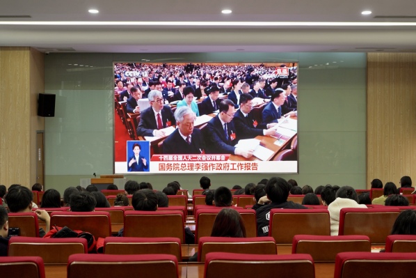 3月15日下午,我校举行第六期发展对象培训集中视频学习。全体学员在教学楼3-101集中观看了十四届全国人大二次会议开幕会国务院总理李强作政府工作报告。会议由党校老师饶琼主持。