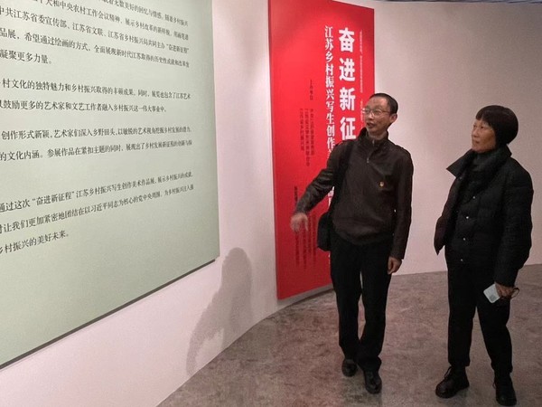 展厅展出了一系列反映江苏乡村振兴主题的艺术作品,这些作品不仅展现了艺术家们对乡村自然风光的深刻描绘,也体现了他们对乡村振兴战略的深刻理解和积极响应。苏州市文联通过引入高新数字化技术,呈现全新的视觉盛宴,赋能城市元素,参观者通过互动屏幕,近距离欣赏画作细节,通过VR技术置身乡村画卷,全面展示了人工智能技术和文化艺术的完美结合。