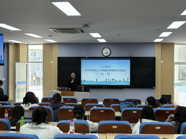 中国式现代化关键在于科技的现代化。近年来,为了不断优化科技创新生态,苏州全面发力。3月20日下午,由马克思主义学院组织开设的《读懂苏州》第二讲“科技苏州”邀请到苏州研途教育科技有限公司CTO齐伟为大家介绍当前苏州科技与人工智能领域发展的现状与趋势。