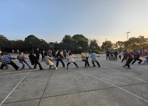 此次活动分为“破冰仪式”和“趣味活动”两个部分。按照线上随机抽签分组,让同学们不拘泥于本组织内部熟悉的同学,也能够与其他组织成员产生密切联系。首先开展的是“破冰仪式”——拔河比赛,在团队协作的力量下,同学们动作整齐划一,待裁判一声令下,大家使出浑身解数,气氛在同学们的口号中达到高潮。拔河比赛结束后,同学们都逐渐熟悉起来,活动现场愈发热烈。