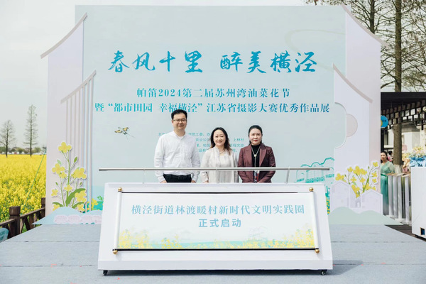 3月30日,“春风十里醉美横泾”帕笛2024第二届苏州湾油菜花节暨“都市田园,幸福横泾”江苏省摄影大赛优秀作品展在苏州吴中区横泾街道林渡暖村举办。以花为媒,凝聚农人合力,塑造文明新风,在东太湖畔打造“诗与远方”。在这场文化与自然交融的盛宴中,苏州城市学院城市文化与传播学院的青年大学生志愿服务团队——“青衿志行志愿服务队”在校团委领导和学院团委具体指导下参与其中,为乡村振兴注入青年力量。