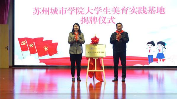 最后,吴昌政、蒋妍共同为“苏州城市学院大学生美育实践基地”揭牌。
