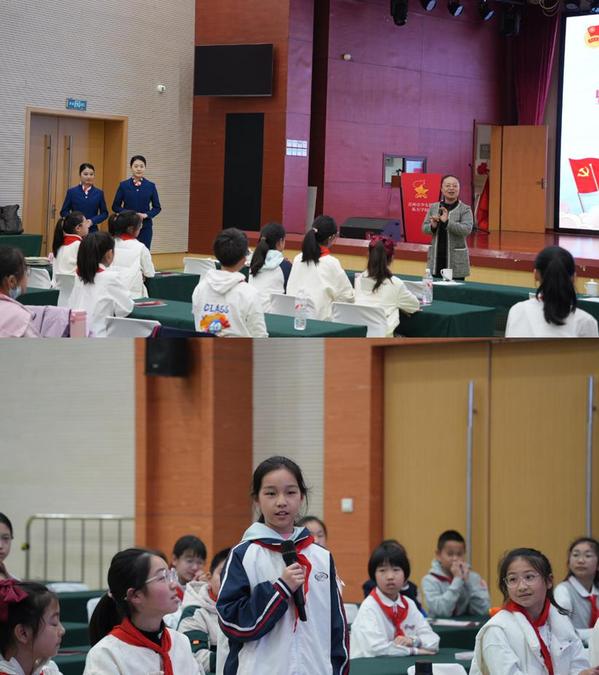 揭牌仪式结束后,队长学校课程也随即开课,我校设计与艺术学院熊莹老师和航管专业同学为小朋友们带来《少儿礼仪训练》课程,帮助小学生塑造健康的体态以及良好仪态形象,讲授日常待人接物的礼仪,提升学生综合素质以及自信心。