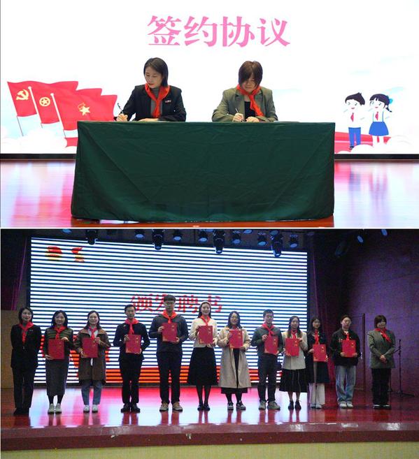 崔苏妍与冯毅斌共同签署《苏州城市学院大学生美育实践基地共建协议书》,并颁发“‘逐美青红’大中小学美育思政一体化项目”导师团成员和参与单位颁发聘书。