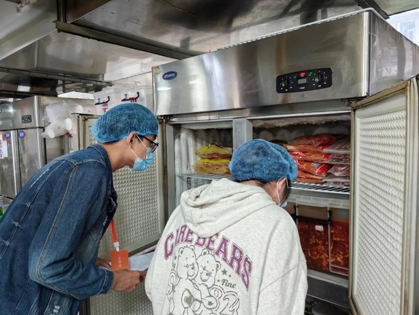 在活动期间,学生们分成若干小组,对食堂的各个环节进行了全面、细致的检查。在检查过程中,他们重点关注了食材储存、加工以及餐具消毒等环节。学生们深入食材储存区域,仔细观察食材的保存环境,确保食材的新鲜与安全;同时,他们还仔细检查了食品加工过程,监督操作规范,以预防食品安全问题的发生。此外,学生们还对餐具和消毒设施进行了严格的检查,以确保食堂就餐环境的卫生与安全。