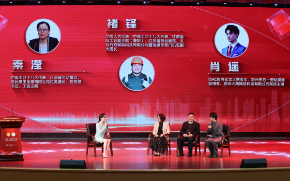 活动中,全国人大代表、中国工会十八大代表、江苏省劳动模范褚锋,中国工会十八大代表、江苏省劳模秦滢和苏州市五一劳动奖章获得者肖遥三位劳模先进结合自身成长成才经历进行交流分享,展示出新时代苏州劳动者立足岗位、奋发有为的精神风貌。