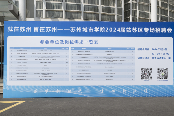 为深入贯彻落实党中央、国务院“稳就业”“保就业”决策部署,抢抓高校毕业生就业关键期,为毕业生和用人单位搭建安全、便捷、高效的信息沟通渠道和双向选择平台,我校于4月9日在学生活动中心一楼举办“就在苏州,留在苏州——苏州城市学院2024届姑苏区专场招聘会”。