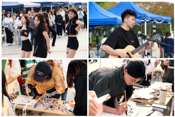 活动当天,巧妙的集市设计和沉浸式的项目体验共吸引了我校1200余名师生参与活动,将德智体美劳的“单弦独奏”升华为“五育融合”的交响乐,受到了广大师生的一致好评。大艺联和1.5G音乐公社积极发挥美育育人功能,共同带来了“‘四季’音乐汇演·春”主题演出;智能制造与智慧交通学院的“‘智’想和泥在一起”摊位为同学们提供了亲手体验非遗文化的机会,增进对传统手工艺的理解和欣赏;“益心义卖”摊位和数字经济与管理学院的“春风知‘义’,‘爱’行不止”摊位通过售卖爱心物品获取善款,为精康人群和困难家庭带去温馨与祝福;设计与艺术学院的“‘香’伴苏城·香囊DIY”摊位让温润和美常伴同学左右,动手制作驱蚊中草药的香囊;城市文化与传播学院的“制扇至美,不见不‘扇’”摊位将一柄柄素扇装饰程一件件充满快乐和美好寓意的艺术品;光学与电子信息学院的“电子洁净计划”摊位帮助同学们的数码设备进行合适的除尘和清洁;计算科学与人工智能学院的“智慧未来体验”摊位带领同学们体验人工智能的使用,感受科技的魅力;城市治理与公共事务学院的“‘食’来‘运’转”摊位设置健康卡路里挑战,同步为同学们科普营养膳食和健康理念。