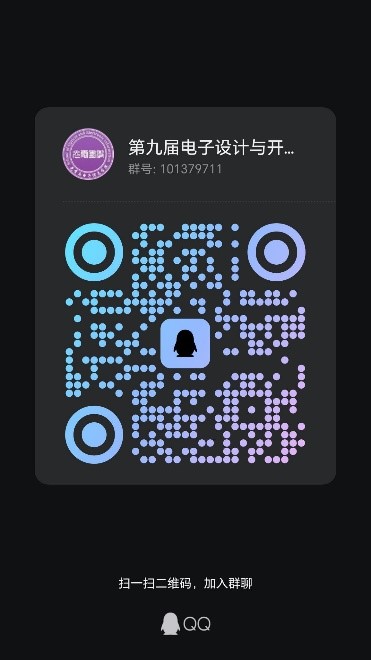 线上报名,3人一组自行组队,扫描下方“在线报名表”二维码完成报名,并加入第九届电子设计与开发竞赛咨询群,进群备注“班级+姓名”。暂未完成组队的同学,先报名、加群,再进行组队。