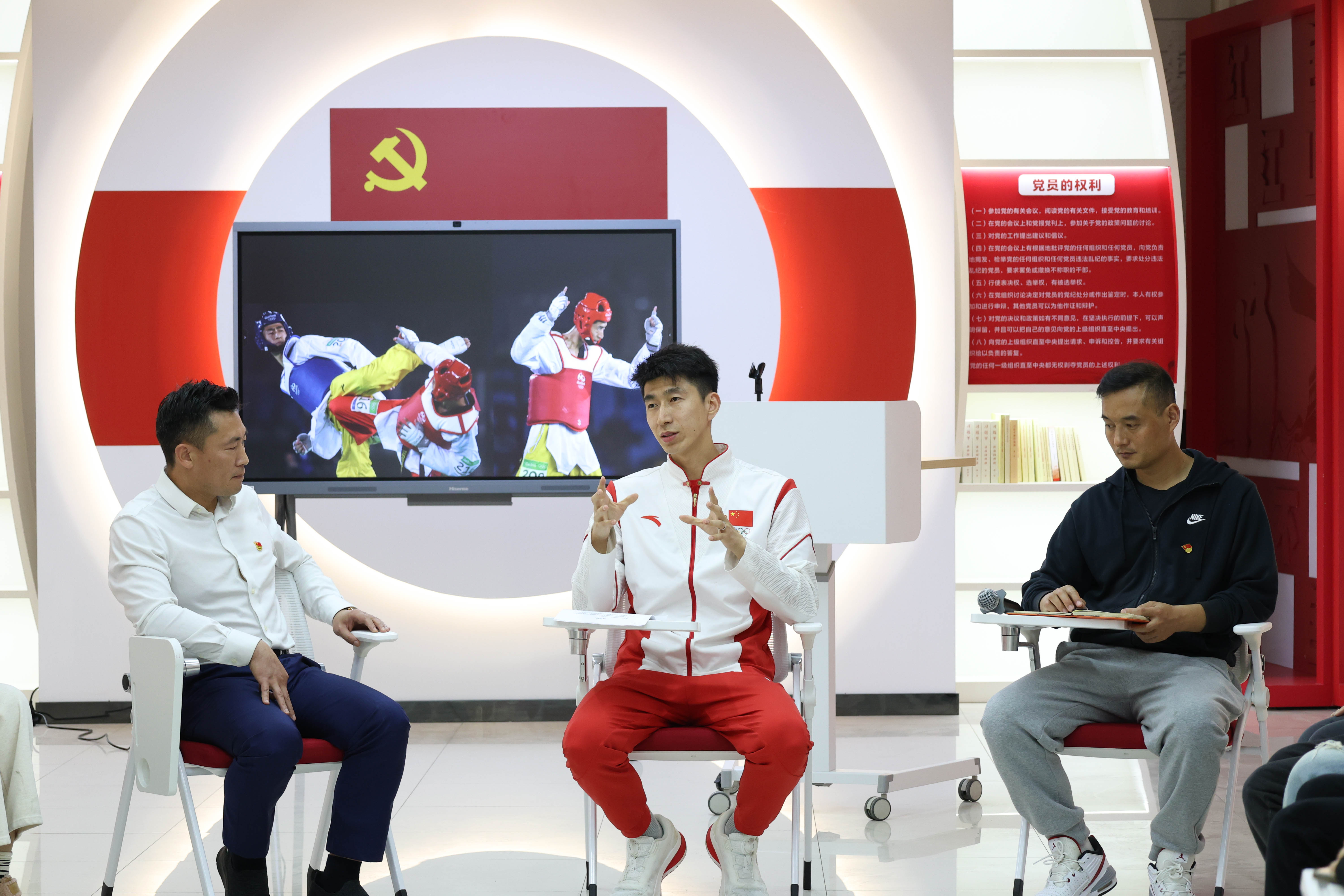 赵帅随后发言,分享了他进入国家队和获得奥运冠军的亲身经历,强调坚韧不拔的体育精神对他个人成长的巨大影响。即使受伤或遇到困难,他也始终坚持自律和自信,遵循运动的规律勇往直前。在谈及担任东京奥运会开幕式中国代表团旗手的感受时,赵帅表示,他心中充满了作为中国人的激动与自豪。他感激背后有无数工作人员、教练和队友的支持与付出,这让他深切体会到了祖国的强大和团队合作的力量。