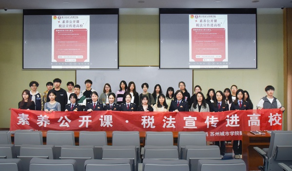 为深入宣传税法知识、解读税费政策、倡导税收诚信,加强学生税法专业素养。在第33个全国税收宣传月期间,数字经济与管理学院联合国家税务总局苏州市吴中区税务局、国家税务总局吴中经济技术开发区税务局开展“素养公开课·税法宣传进高校”活动。