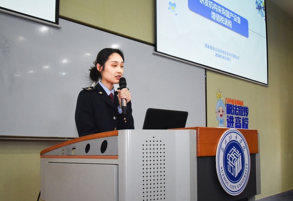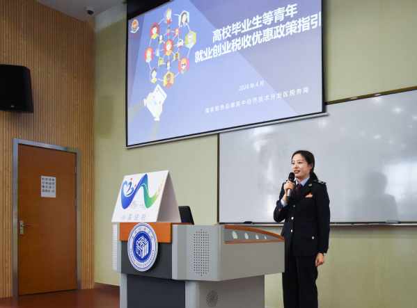 本次宣讲会设置“税法宣传、政策宣讲、互动答疑”三个环节,以精准辅导、精细服务为高校大学生就业创业保驾护航。首先,国家税务总局吴中经济技术开发区税务局法制股副股长、江苏省税务局兼职教师卢丹向同学们讲授了大学生创业就业税收的相关优惠政策,让同学们在点燃创新激情的同时,也加深了对就业创业相关政策的认识。