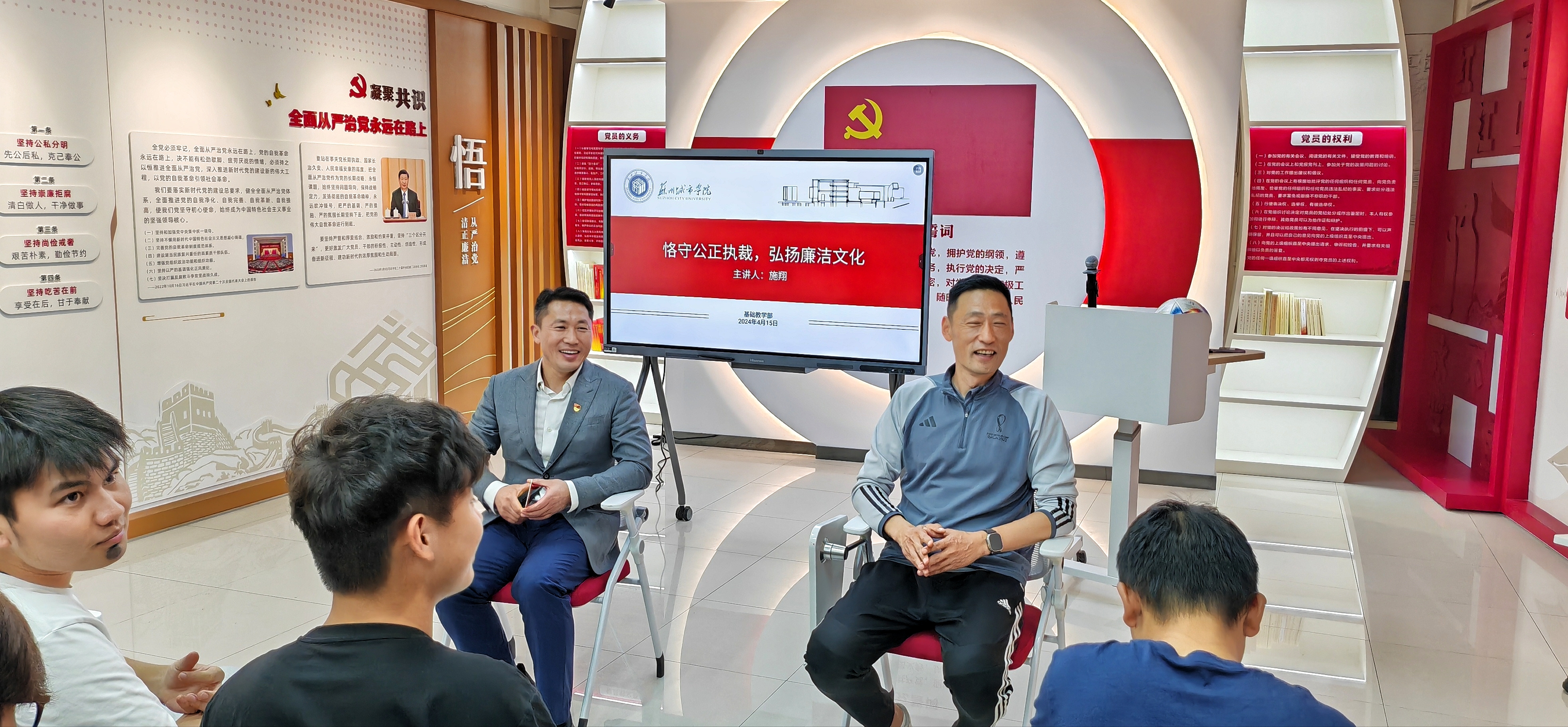 为加强新时代廉洁文化建设,积极响应廉洁城院建设总体目标,增强师生廉洁意识,弘扬崇廉拒腐的校园风尚,4月15日,由基础教学部、智能制造与智慧交通学院共同主办的《恪守公正执裁,弘扬廉洁文化》讲座在党建与廉政教育基地举行。本次讲座邀请了苏州科技大学体育部副教授、足球国际级裁判、2022年卡塔尔世界杯裁判员施翔担任主讲嘉宾,基础教学部党委书记、主任李勇主持。