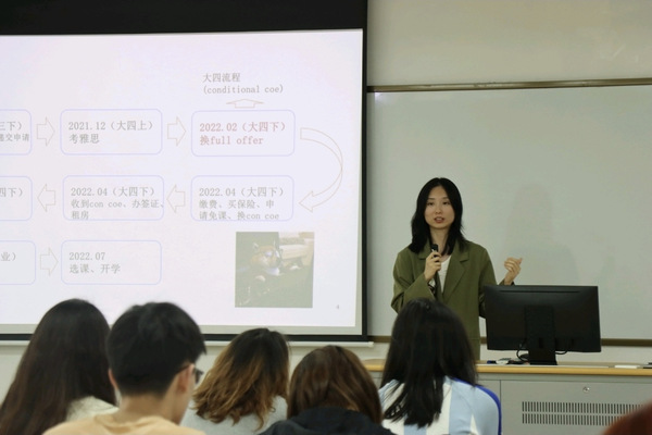 张竞婧分享了她赴澳大利亚墨尔本大学攻读应用语言学硕士的经历。她以自己的学习旅程为起点,分为留学前期准备、日常生活以及其他体验三个部分分享了宝贵经验。张竞婧用三个关键词——reading、assignment和teamwork,总结了她的留学学习体验,强调阅读的重要性,指出国外大学的最终成绩与日常作业紧密相关,同时分享了她在小组合作中实现能力最大化的经验。谈及其他体验时,她说到了自己在澳洲兼职中文老师的经历,以及如何将兼职与学习相结合。