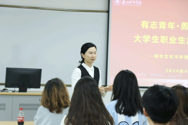 4月15日下午,发展委员会办公室联合城市文化与传播学院,在21级英语专业班级举办了一场“有志青年 勇往‘职’前”的大学生职业生涯规划活动,我校纪委书记李萍、18级英语专业校友张竞婧、18级市场营销专业校友晋阿倩受邀出席本次活动。活动旨在引导英语专业学生深入思考毕业后的职业发展路径,并促进校友与在校生之间的交流协作。