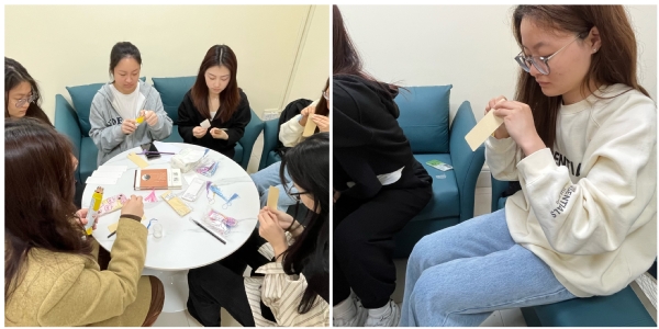 阅读分享会结束后,支部团员代表围绕“笔墨丹青绘经典,传承系于方寸间”主体进行书签DIY,同学们充分发挥自己的创意和想象力,运用手中的材料制作出一个个精美别致的书签。有的书签设计新颖独特,有的书签蕴含着深刻的寓意,每一件作品都展现了巧思妙想和精湛技艺。通过DIY书签,不仅锻炼了动手能力,也增添了阅读的乐趣。