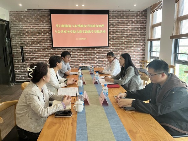 吴门桥街道对城市治理与公共事务学院教师代表的到来表示欢迎,并带领教师代表参观亲水吴门党群服务中心。参观后,双方进行座谈交流。丁艳玲详细介绍了吴门桥街道的基本情况,她表示,街道历来重视和高校的合作,下辖的29个社区也可提供志愿服务、实习实践和劳动教育的岗位和平台,同时期待与苏州城市学院城市治理与公共事务学院进一步加强合作,助力街道工作品牌化、特色化,街道也将结合学生的专业和人才优势,有针对性地做出实践计划和方案,切实提高学生实习实践能力。