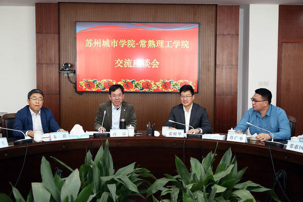 张根华代表常熟理工学院对我校到访表示欢迎,他简要介绍了常熟理工学院的发展概况,重点从合格评估、办学模式、应用科研和师资队伍四个方面阐述了学校的办学特色。他表示,引导教师的知识结构和能力结构面向应用型人才培养转型是最核心任务,常熟理工学院与苏州城市学院同属地方应用型大学,两校要在市委、市政府高等教育框架体系下发挥各自优势特长,为区域经济社会发展做出更全面、更深入的贡献和支撑,期待两校在未来的合作中互相学习、共同进步。