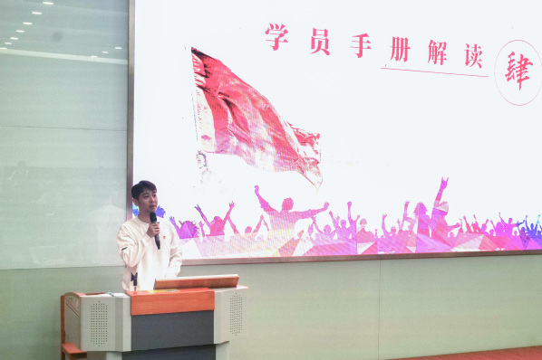 学院团委副书记、青马班班主任邱缙对青马培训班学员手册进行了系统的解读,并对实践交流,经验分享,志愿活动等课程内容方面做出具体要求。