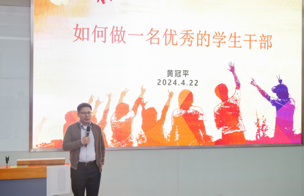黄冠平对如何做一名优秀的学生干部进行了授课指导。他指出,成为一名优秀的学生干部首先要成为一名优秀的人,在优秀的路上要专注于成长而非成功,成长是根本关键和永恒的刚需。他鼓励青马班学员在实践中提升“四力”,即政治力、软实力、行动力、学习力,同时还应做到优秀“六不能”。