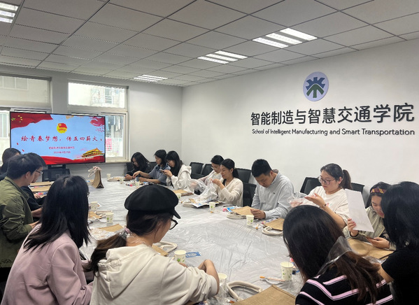 为纪念“五四运动”105周年,深入学习贯彻习近平总书记关于青年工作的重要思想,提升青年人文素质,活跃青年文化生活,4月25日,智能制造与智慧交通学院团委联合院工会、学生党支部在尊师楼214开展了“绘青梦想,传五四薪火”彩绘活动,学院青年教师、党员和团员代表参加了本次活动。
