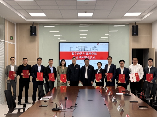 其次,开展学业导师聘任仪式。周高和尹维军代表学院为10位企业专家颁发聘书并合影留念。通过聘任企业专家作为我院学业导师,学院与企业可以相互支持、优势互补、资源互用,共同培养出应用型、高质量的人才。