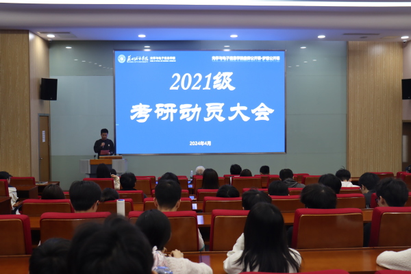 钱敏作考研动员讲话。她结合当前的行业背景,引导同学们要根据自身实际情况和目标学校分数线,把握机会,找准定位,合理选择目标院校。她希望同学们目光长远,在日常学习过程中将理论与实践结合起来,重视课堂纪律和课堂学习。