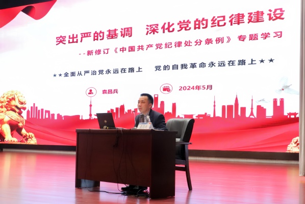 本次集中授课以新修订《中国共产党纪律处分条例》为内容,从四个方面展开学习。首先,袁昌兵梳理了习近平总书记历年来有关全面加强党的纪律建设的重要论述,解读了例如“纪律是管党治党的‘戒尺’、扎紧党纪党规的笼子”等重点表述。