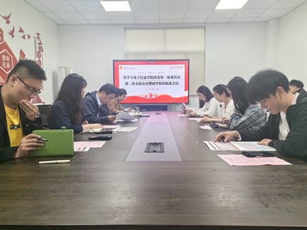 为积极贯彻落实学院党委和学校团委的决策部署,研究学院团学组织、基层团组织的建设管理议题,听取同学们对共青团工作的意见建议,5月11日下午,光学与电子信息学院团委在尊师楼114召开第一届委员会第二次全体会议暨团学组织联席会议。学院党委书记冒维东,团学工作办公室主任郭浩,校团委(美育中心)组织宣传部副科长侯依青,学院共青团第一届委员会委员以及各团学组织负责人参加会议。