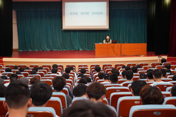 为了进一步加强大学生的安全防范意识,提高自我保护能力,5月13日晚,计算科学与人工智能学院联合党委保卫部(保卫处)于学术报告厅成功举办“警钟长鸣,慧眼识骗”——“意识防”全民反诈讲堂。本次活动特别邀请了苏州市吴中区公安分局“意识防”专班讲师朱声亮老师担任主讲嘉宾,覆盖学院全体400余名大一学生。讲座由辅导员林洁茹主持。