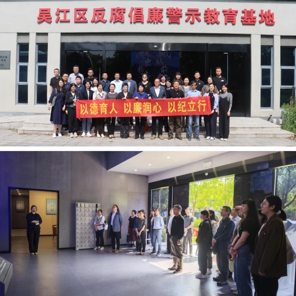 身边的教育是最好的“清醒剂”,全体成员前往吴江区反腐倡廉警示教育基地进行现场学习,在讲解员的带领下参观了序厅和“思想武器 行动指南”“殷鉴不远 警钟长鸣”“忏悔反思 哀之鉴之”“知往鉴今 以启未来”四大展厅,展厅内图文并茂地展示了吴江区违法违纪的典型案例,身临其境的实景教育和身边发生的真实案件对全体党员起到了强烈的警示震慑作用。