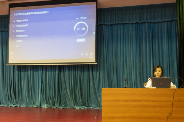 邓老师以“劳动:人世间最伟大的活动”为题展开讲授,她向大家详细介绍了劳动的必要性与意义、正确的劳动态度,分享了自己在创业过程中的困难与挑战,以及如何通过努力工作、不断学习,最终取得成功的故事经历。她鼓励学生在专业领域中不断探索、不断创新,为未来打下坚实的基础。