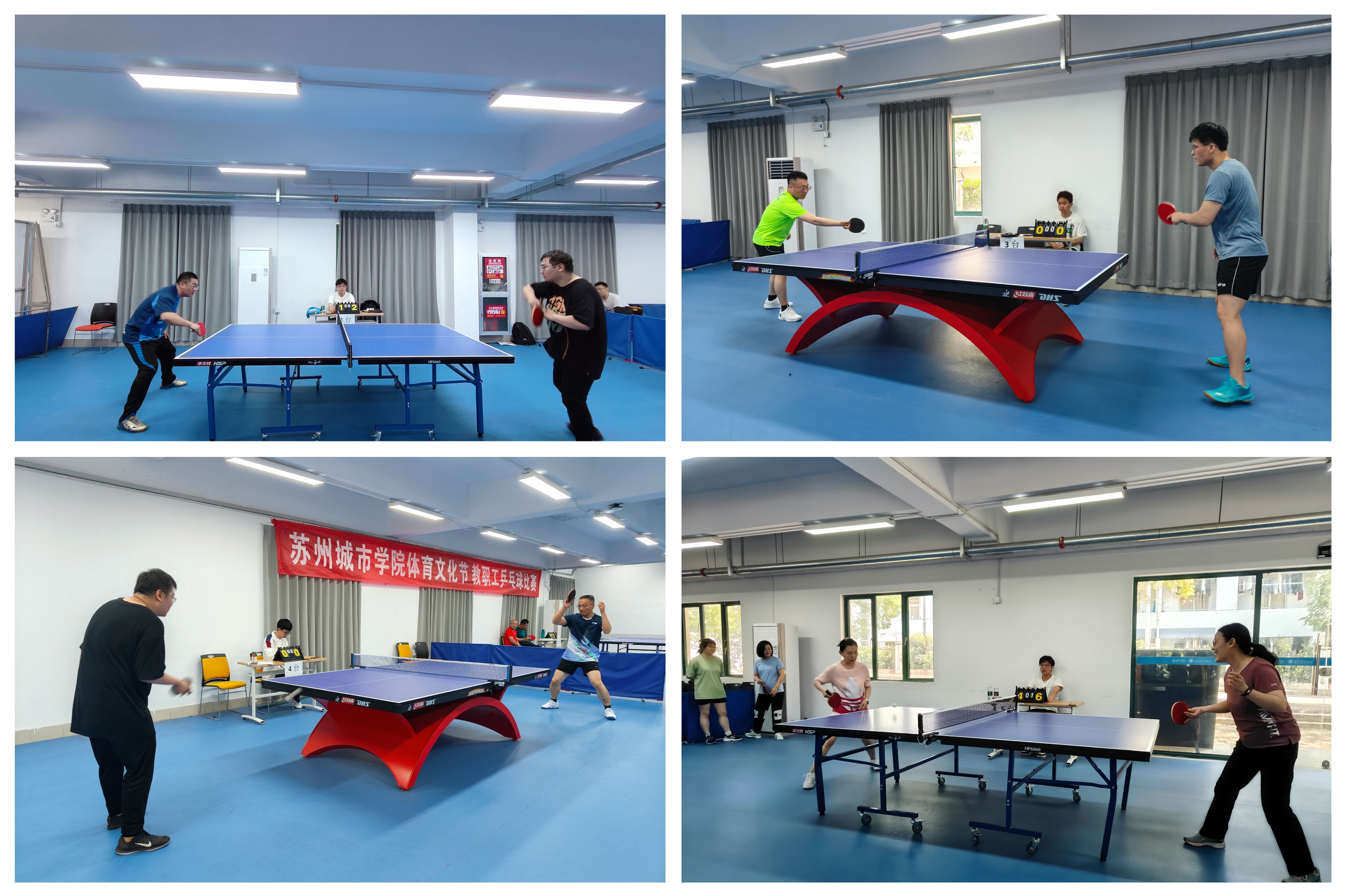 为丰富教职工的业余生活,增强广大教职工的身体素质,推进校园文化建设,5月18日上午,由校工会和基础教学部联合主办的苏州城市学院体育文化节之教职工乒乓球比赛在三创学院一楼乒乓球室成功举行。此次比赛是基础教学部体育系持续推进的以“校园文化节”为主题的系列活动之一。校党委书记芮国强,党委常委、副校长吴昌政,基础教学部党委书记、主任李勇莅临指导,并对本次比赛表示肯定。