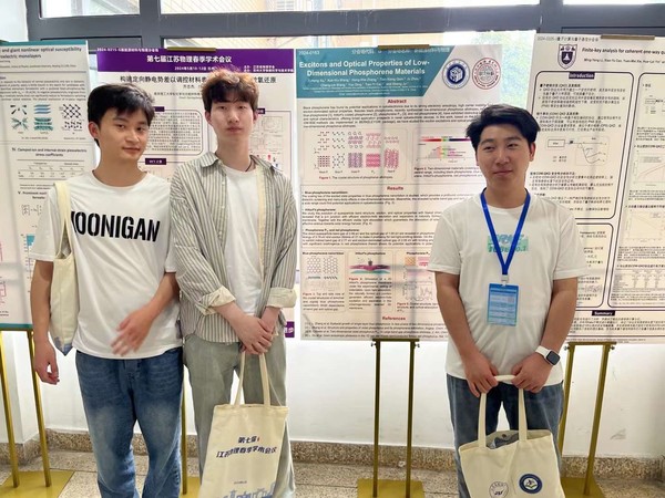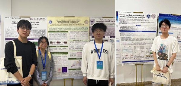 本届会议设有一个主会场和十二个分会场,近500名物理科技工作者、研究生和企业代表围绕物理学热点领域话题开展学术交流。在本次会议分会场的138场口头报告和张贴报告中,光学与电子信息学院尉一悦、徐子恒、汪顺等7名同学代表我校参加会议并以张贴报告形式汇报了《低维碳结构同素异形体的激子及光学性质研究》、《低维磷单质材料的激子光学性质》以及《过渡金属硫化物Janus结构中的激子光学性质》,充分展示了我院本科生对科学研究的热爱以及良好精神风貌,受到与会专家学者的好评。