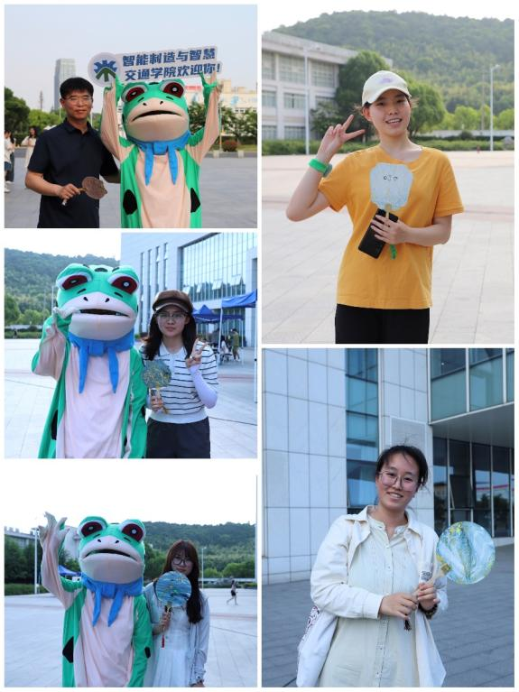 在漆扇摊位旁,我们设计了一个特别的环节——“拥抱蛙”吉祥物玩偶。此环节旨在让同学们在拥抱中感受到温暖的力量,缓解学业和生活的压力,同时也是学院特设的毕业季创意打卡活动的一部分。我们希望画框中的另一主角不再是冷冰冰的物件,而是能够传递温暖、传递情感的“拥抱蛙”。在活动现场,同学们纷纷前来与“拥抱蛙”打卡留影,参与漆扇活动的同学也拿着刚出炉的各具特色的手工漆扇前来合影留念。我们期望本次活动不仅能够在各位同学的青春记忆中留下浓墨重彩的一笔,更希望能够为即将毕业的学子们送上最真挚的祝福。