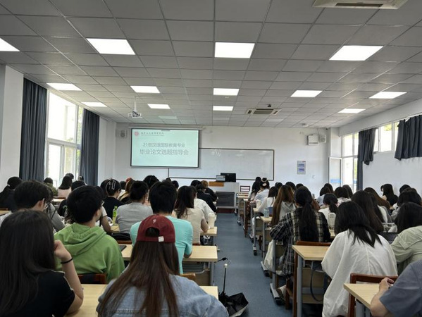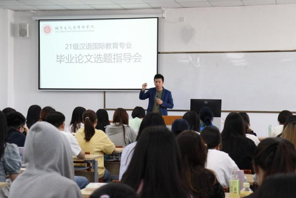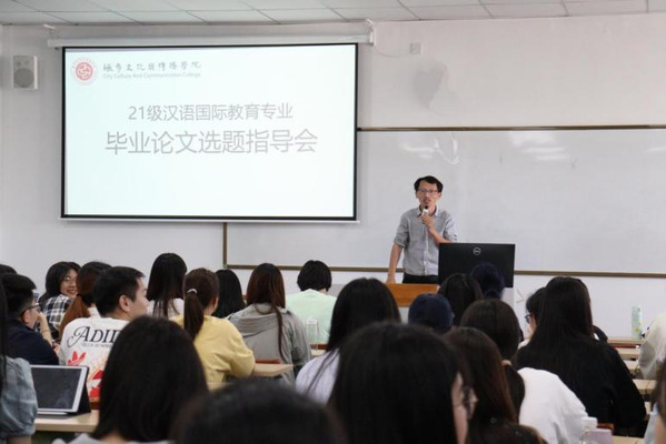 为深入贯彻落实新文科建设工作,推动学科交叉融合,提高文科人才自主培养质量,汉语国际教育专业的“论文写作”课堂迎来了一次别开生面的教学改革实践活动。5月28日上午,由巴丹、季品锋、陈丽军、徐小雄等四位教师携手合作,在1-304教室为2021级汉语国际教育专业的同学们开展了毕业论文选题指导会。四位教师充分发挥各自的专业优势,从学术价值、研究难度、创新性等方面对学生的选题进行了深入的点评和指导,帮助学生更好地明确研究方向,切实提升论文写作质量。