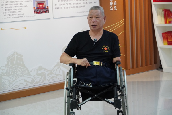 访谈现场,展亚平为师生讲述军旅生涯中他与战友们的英勇事迹。1962年出生的展亚平,于1981年10月从沙洲县(后为张家港市)乐余镇应征入伍。1985年1月,对越自卫反击战的一次战斗中,为掩护战友被流弹炸致重伤,先后动过七次截肢手术,失去了双腿和左手。展亚平以亲身经历为师生阐释“老山精神”“硬骨头精神”的内涵,以挫折中奋起的心路历程诠释革命理想高于天的意义。每当提到牺牲的战友,他的眼中便饱含热泪,他说“我要替死去的战友好好活着,讲好他们的故事,完成他们的愿望”,希望青年大学生赓续红色血脉坚定理想信念,铭记英雄领悟生命密码,珍惜宝贵时光学真本领,将对党和国家的热爱转化为圆梦奉献的强大动力,成就美好人生。