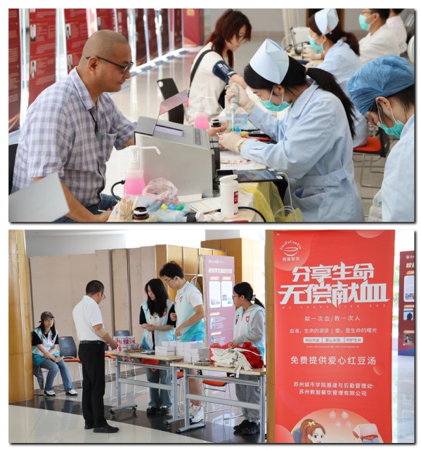 点滴鲜血凝爱心,延续生命见真情。为进一步弘扬“奉献、友爱、互助、进步”的志愿精神和“人道、博爱、奉献”的红十字精神,5月28日至29日,校团委、基建与后勤管理处联合苏州市中心血站在学生活动中心一楼组织开展2024年春学期无偿献血活动。